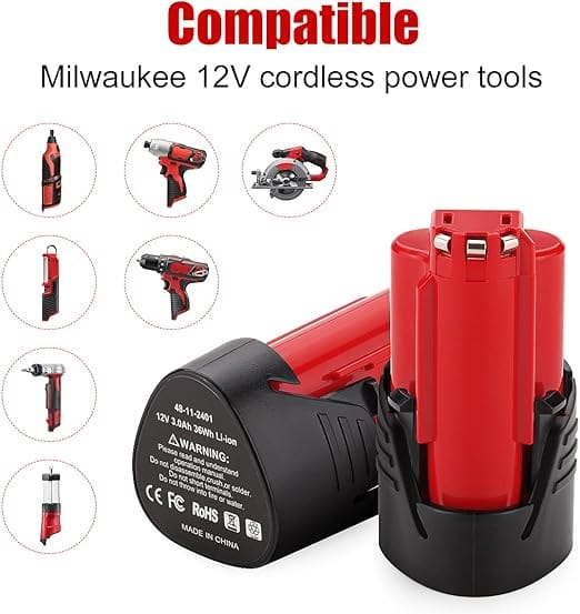 - ✅Safe & Reliable: Ideal replacement battery for Milwaukee cordless tools M12. CE, FCC, and ROHS certified and tested by the manufacturer to match OEM products. No memory effect. Can be charged or discharged as needed without loss of capacity,