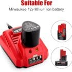 - ✅Widely Compatibility: Compatible with MILWAUKEE M12/48-11-2411. Compatible with Milwaukee m12 12v battery charger: 48-59-2401, 48-59-1808, 48-59-1807, 48-59-1810, 48-59-1204,