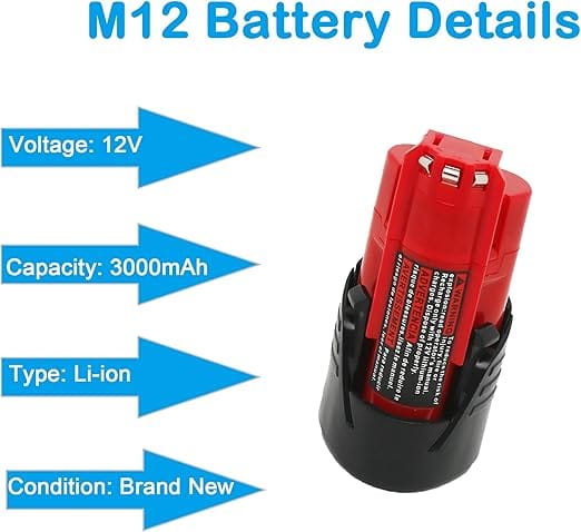 - Compatibility : Replacement milwaukee M 12 battery system for 100+ Milwaukee 12V Cordless Tools, include heated jacket.