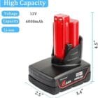 NMOER 2 Pack M12 12V 6.0Ah Lithium Battery