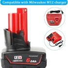 - Good compatibility, one battery fits multiple tools, commpatible with all Milwaukee m12 12v tools